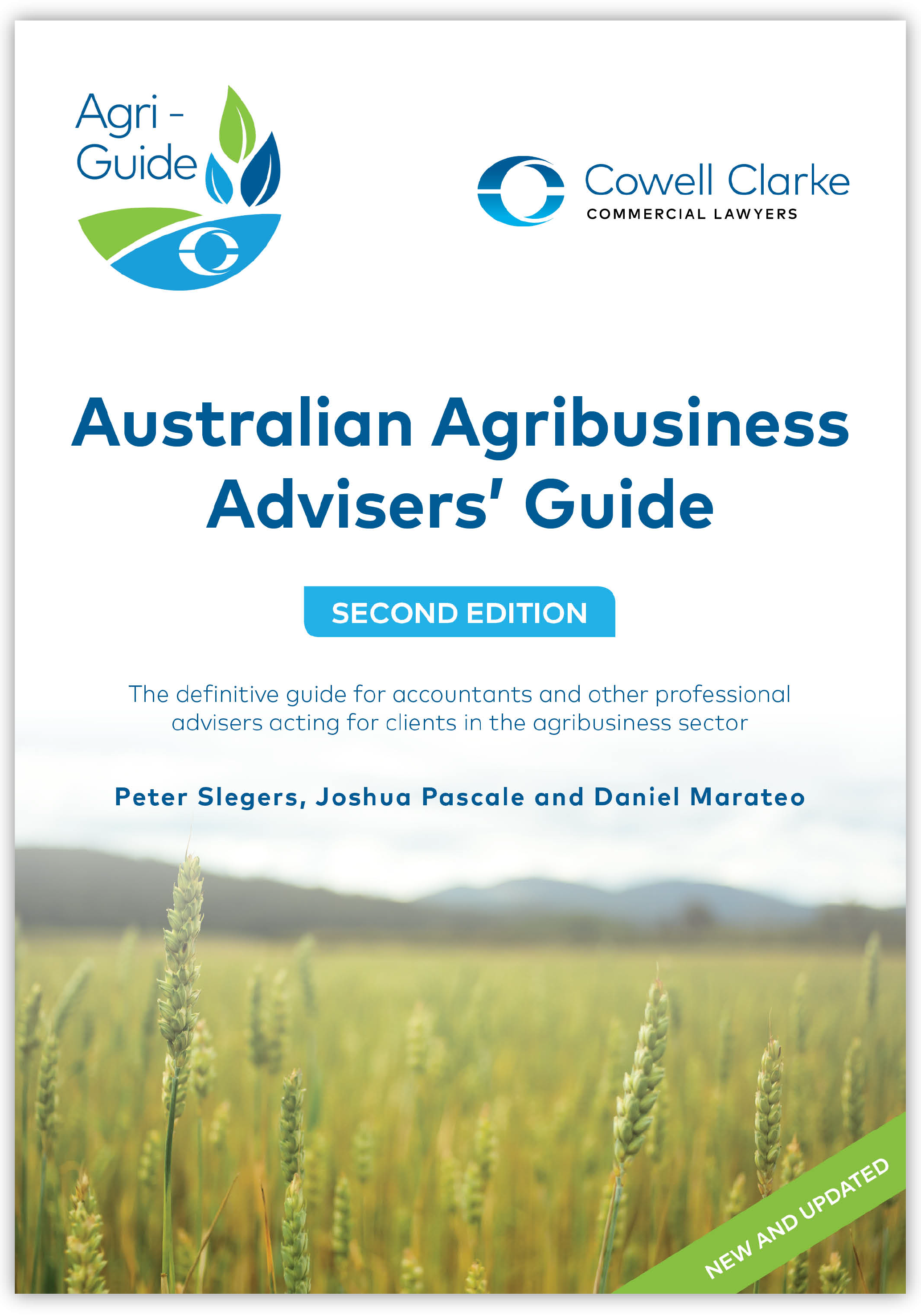 Co-authored by Peter Slegers, Joshua Pascale and Daniel Marateo of Cowell Clarke’s Agribusiness and Tax & Revenue groups, the Agri-Guide traverses, amongst other things, the challenging issues associated with optimal business structuring for the agribusiness sector, agribusiness acquisitions and sales, business succession, navigating the tax maze (including optimising the use of tax concessions) as well as addressing the ever-changing issues relating to inter-generational succession planning.